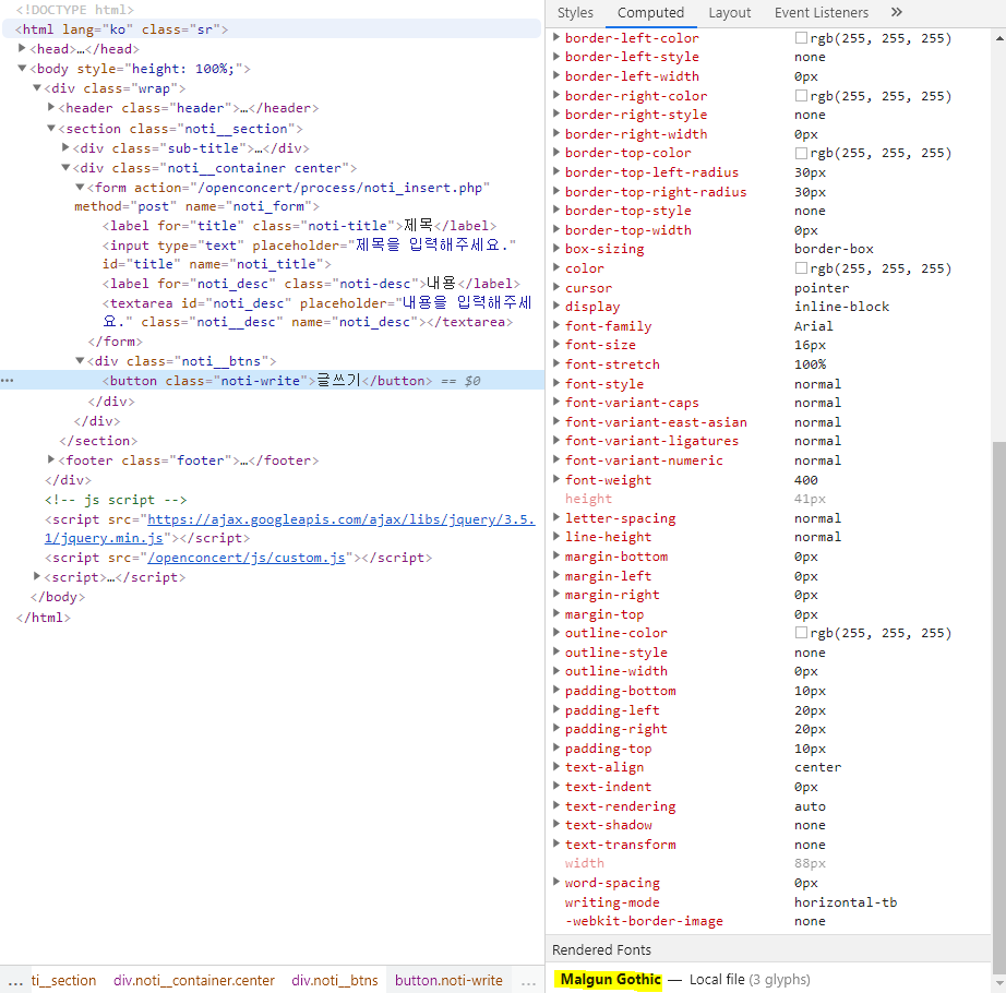 아무튼 이제 원인을 알았으니 태그 자체에 font-family를 다 걸어버렸다.