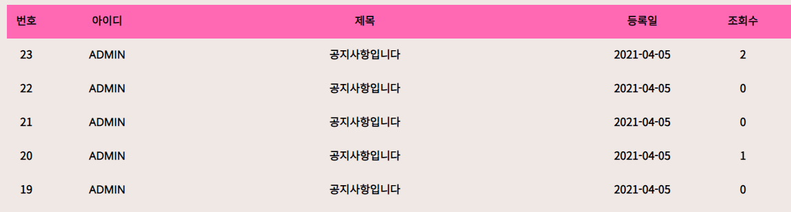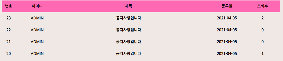 noti-id: 공지사항이기 때문에 관리자 이름인 ADMIN으로 고정해두었습니다.