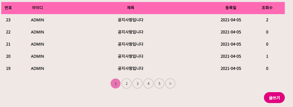 전체 페이지 수란, 1페이지 당 5개의 글이 있으며