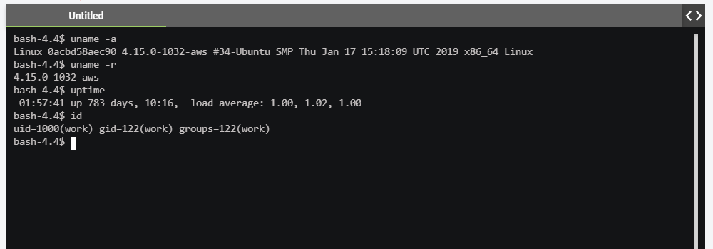아래에 'shell'을 선택하면 터미널 안에서 리눅스 명령어를 연습할 수 있다.