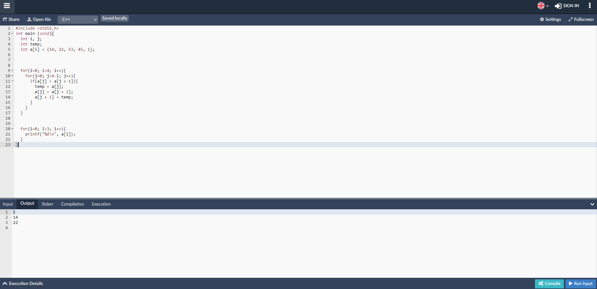 원하는 언어를 선택한 뒤, 컴파일 후 run input을 해주면 출력된다.
