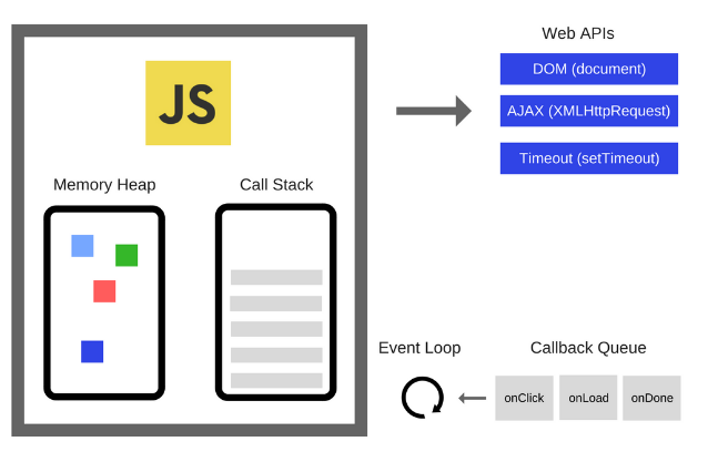 이유: JS는 싱글스레드이기 때문이며, JS의 큐에서 하나씩 꺼내고 콜 스택이 하나가 있는데 그것을 하나씩 처리하는 과정 때문이다.