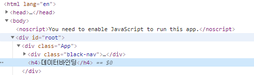 변수를 선언하고 H4 태그 안에 중괄호를 열고 해당 변수만 넣어줘도 렌더링이 가능하다.