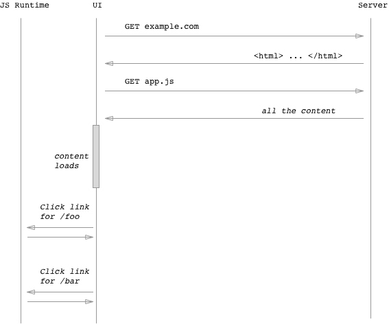페이지 내에서 다른 링크를 클릭하면 다시 서버에서 해당 페이지의 HTML을 받아와서 페이지 전체가 업데이트 되어야 한다. 주소를 바꿀 때 마다 재렌더링 돼서 화면이 깜빡이는 불편을 안겨줌.