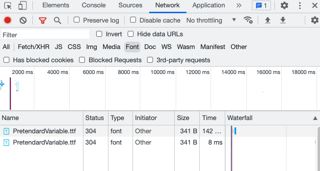 network/font 탭에서도 토글할 때마다 폰트가 계속 담기는 것을 확인할 수 있었다.